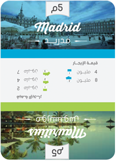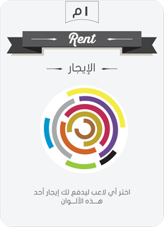 بهذا الكرت تستطيع تحصيل إيجار أحد اللونين الموجودة في الكرت من جميع اللاعبين بشرط وجود أراضي من نفس اللون في ساحتك